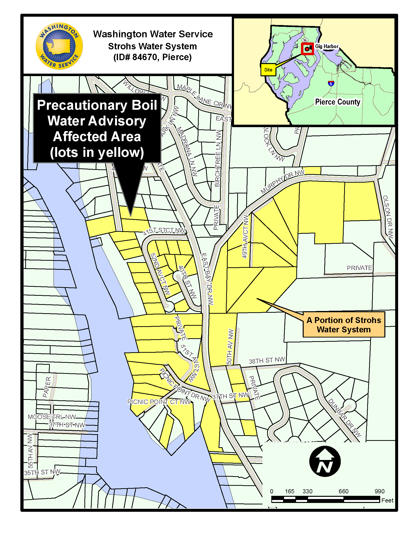 On Tuesday, April 14, Washington Water Service will be installing mainline isolation valves near the intersection of Murphy Drive and Eastbay Drive. This work will require that we depressurize a portion of the water system, resulting in an outage to the 58 homes/lots highlighted on the map below.